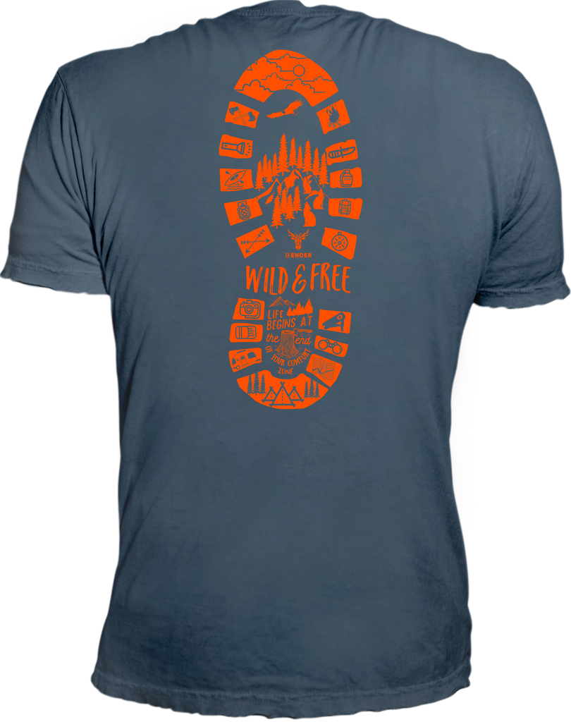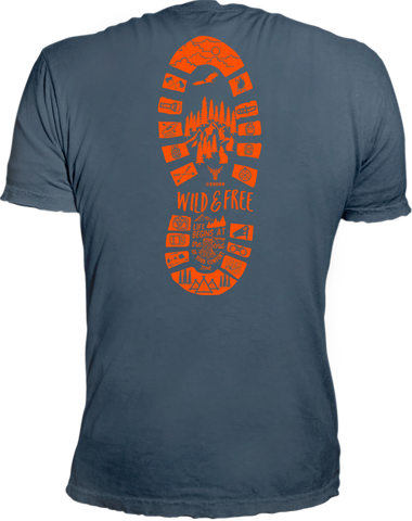 dunkel graues qualitäts Shirt, made in Europe mit ökologischem Fußbdruck. Wild & Free in auffälligem orange