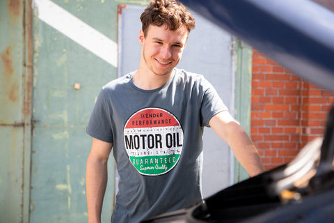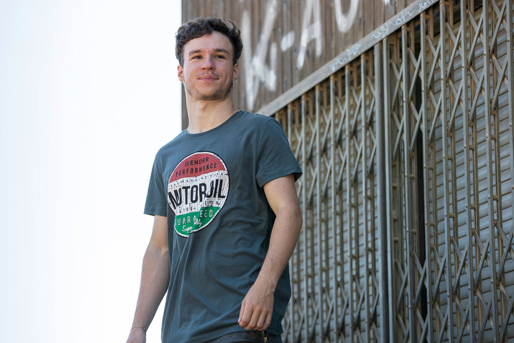 verlockendes Retrodesign  auf zuverlässigem Rundhals Shirt. Der faszinierde Druck und die das unwiderstehlich, edle dunkel grau verschmelzen zu einem harmonischen Gesamtbild.